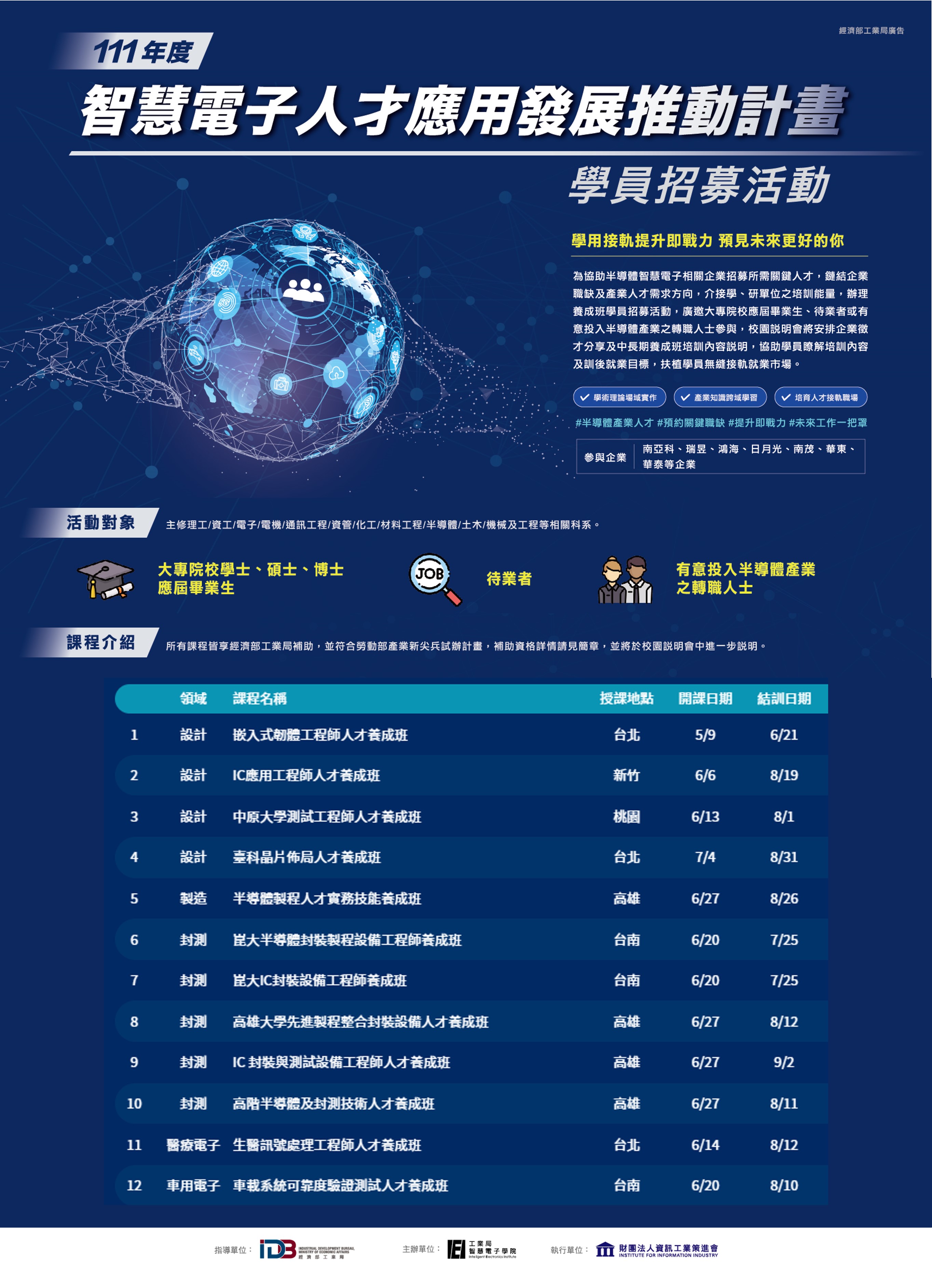 - 參與企業:日月光、南茂、華東、華泰等。